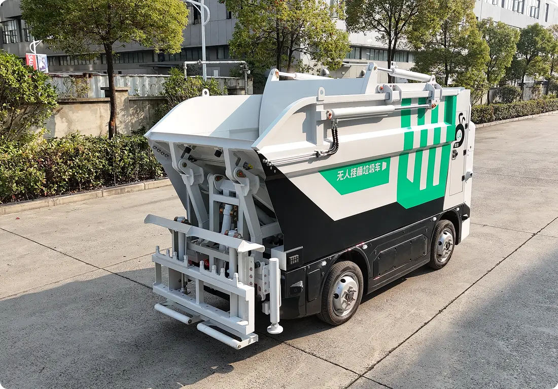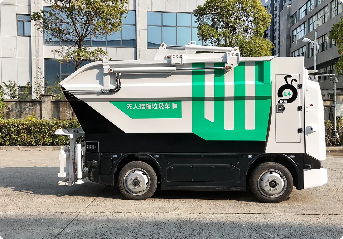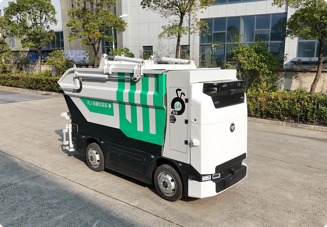 蚁洁后高位垃圾清运机器人 智能无人驾驶:自动避障、识别交通信号、遵守环卫作业规则(如低速行驶、靠边停靠)